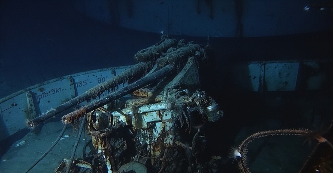 沉入海底数十年后俾斯麦号的残骸。