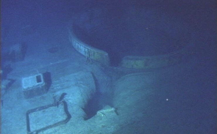 俾斯麦号的炮塔底座,在倾覆沉没时很多炮塔都先散落了,因为当时许多军舰的舰炮炮塔都是依靠重力安装的。