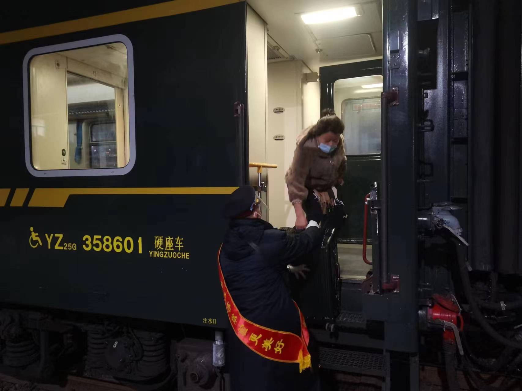 1月21日晚,除夕夜。正是一家人围坐一起吃年夜饭的时候,2604次乘务组收拾行装,义无反顾地担当起年三十的乘务工作。21点58分,列车正点从大同站发出。