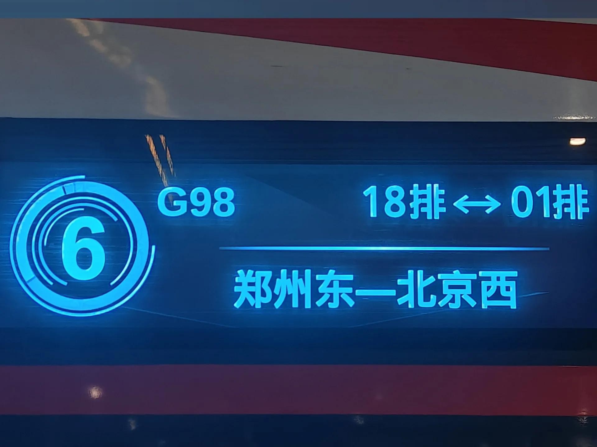 接下来说的这趟车是郑州东站始发最快高铁。它就是开往北京西站G98次。其它个别过路车与G98次时间上一样。但G98次中途一站不停。让大家的旅途视觉体验满满。乘什么时间段的车。还是由广大旅客来定的。