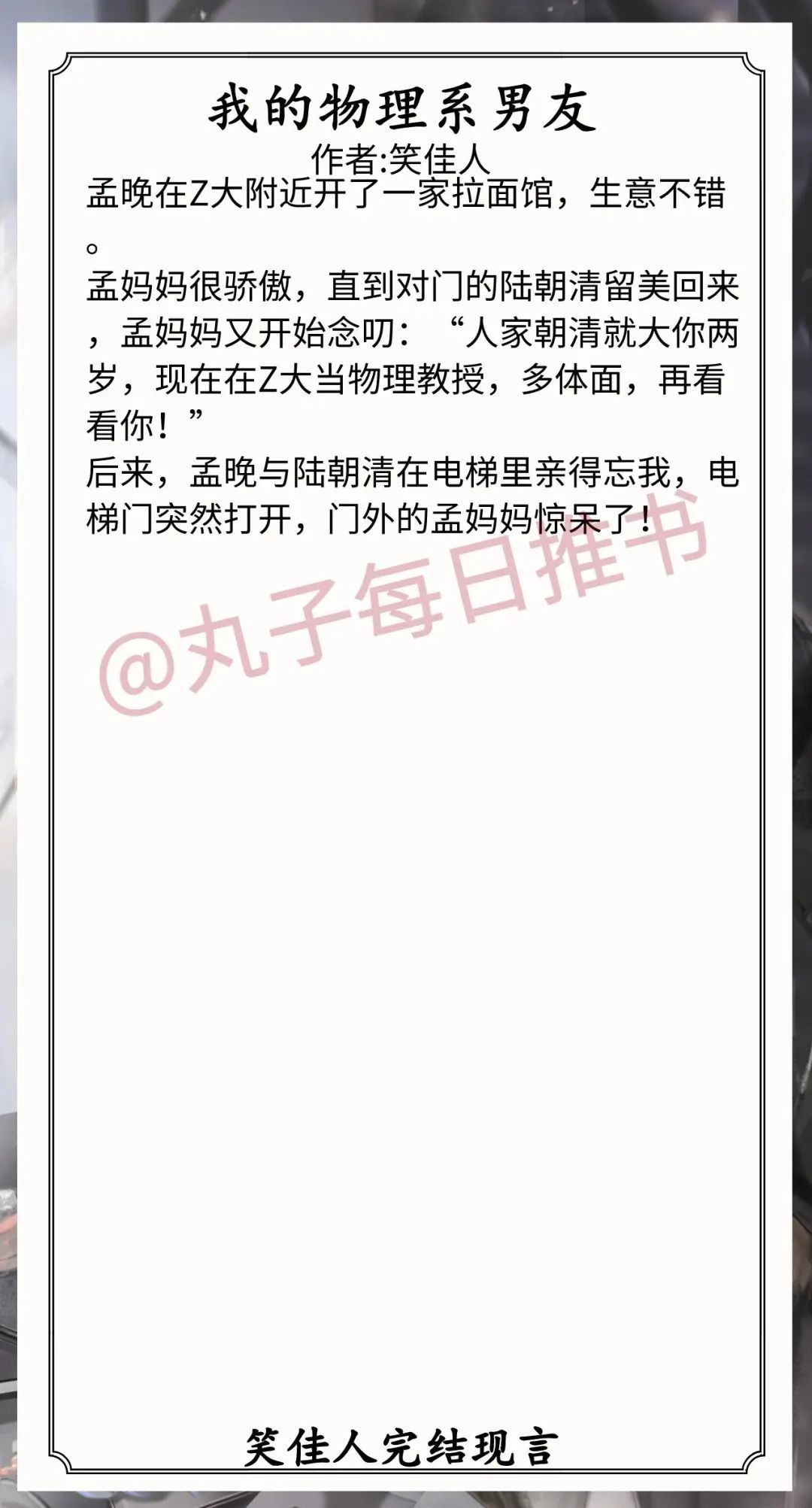4.《我的物理系男友》作者:笑佳人(貌美清纯拉面馆老板vs高冷腹黑物理系教授,久别重逢,现言小甜饼)