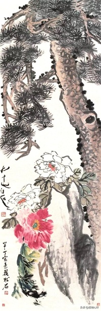 松树不仅是在内容形式上较为入画,他苍老的躯干,穿插枝杆、茂密的松针,都是十分入画的。毛笔在宣纸上皴擦点染、浓淡干湿,来表现松树的千姿百态。