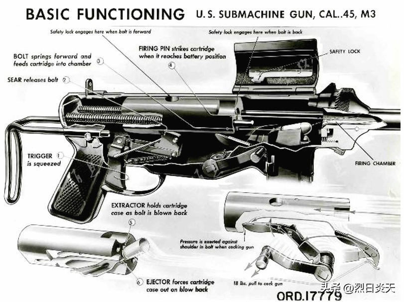 三、结构简单,维护便捷。M3冲锋枪简单坚固,该枪由9个零部件组成,这种设计不仅降低了生产成本,加快了制造速度,因为零件数量少,所以维护非常方便快捷。