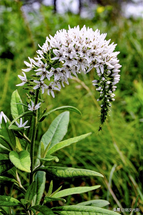 狼尾花又称狼尾巴花、野鸡脸、珍珠菜、虎尾草等,是报春花科珍珠菜属多年生草本植物。具横走的根茎,全株密被卷曲柔毛。茎直立,高30-100厘米。叶互生或近对生,长圆状披针形、倒披针形以至线形,长4-10厘米,宽6-22毫米,先端钝或锐尖,基部楔形,近于无柄。