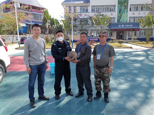 很快,值班民警就注意到这位“不速之客”,“这是国家一级保护动物穿山甲,不要惊扰它。”在照片确认“来客”身份后,民警静静在一旁看护着,等待专业人士前来救助。