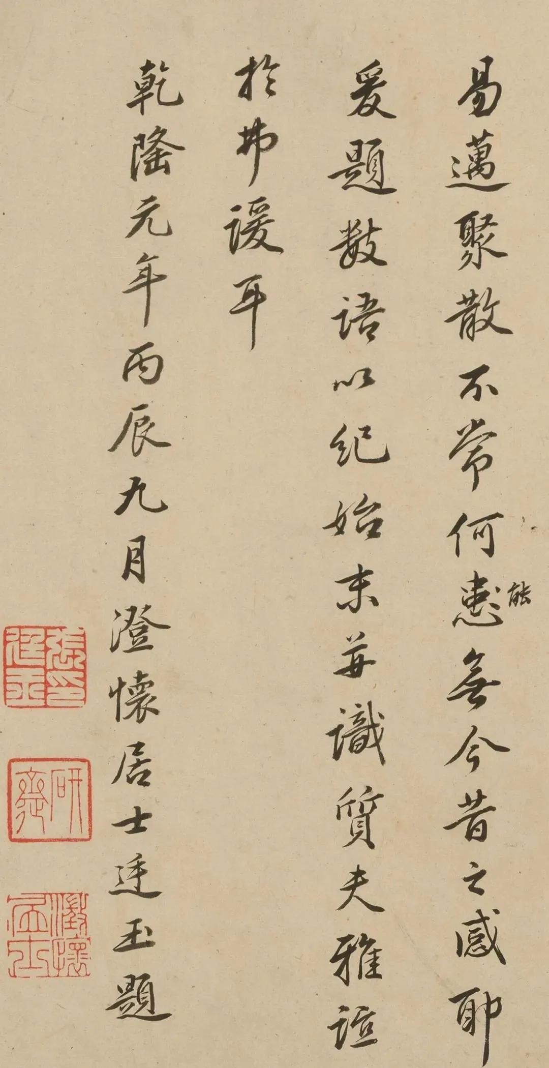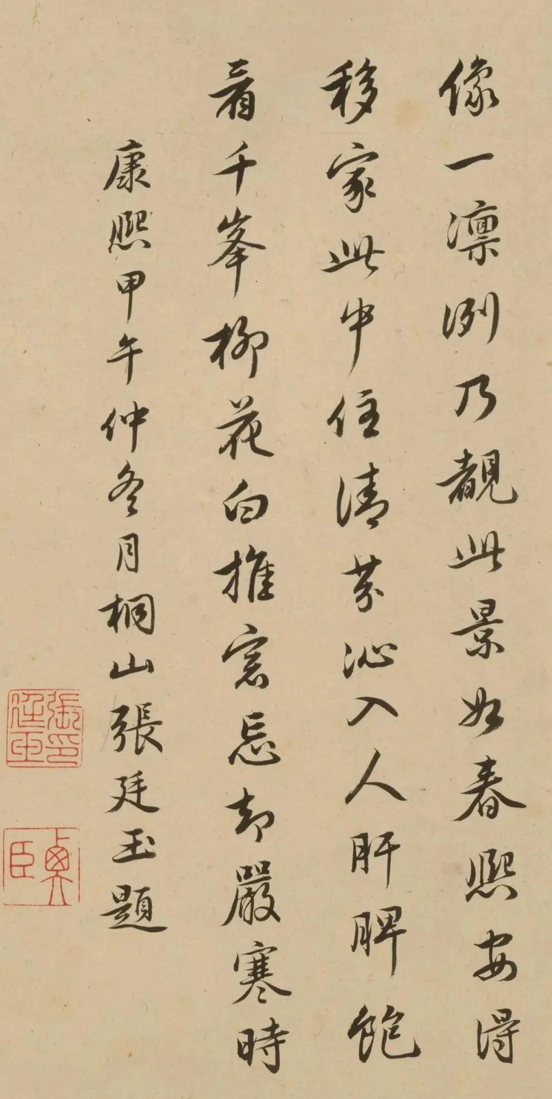 这幅作品我们可以看到落款是写的张廷玉题,写的流畅妍美,有赵孟頫书法的柔美之意。