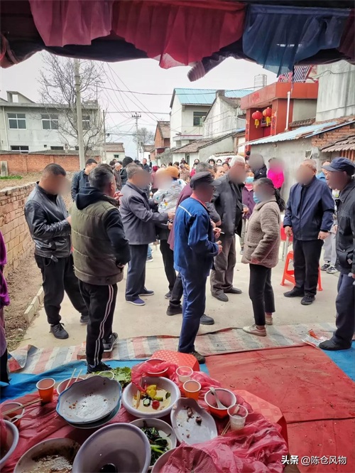 在陕西农村一般人红白事办席是肯定回不了本的,外人坐席大部分老人“拿礼”50带孙子孙女,有工作的年轻人或是家主会给100或200,老年女性不拿礼硬蹭连吃带拿司空见惯。图二是第一轮宴席过后主家送客场面,外面一圈可不是单纯围观的,那是看到送客便见缝插针上来祝福几句,主人便邀请入席的同村或邻村不熟的“熟人”,“礼”嘛随不随就看心意了……不过第一轮正式列席的人多是主家邀请或是亲友,吃的是流水席正式准备的菜色,最全不说准备得也好,到第二轮就是用多预备的菜加桌,凉菜不齐热菜更没有大菜了……