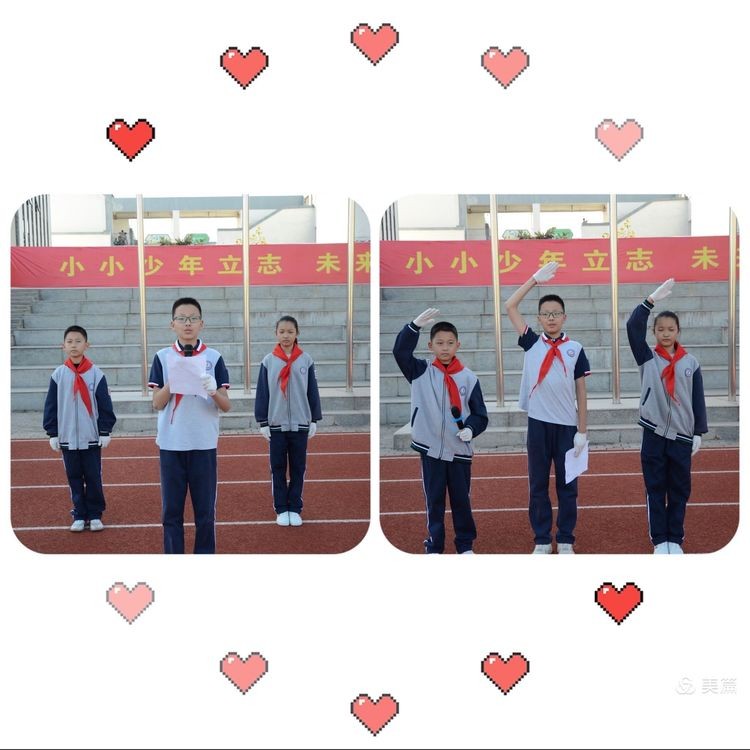 入队是新的人生起点,入队是更高理想的启航。佩戴上鲜艳的红领巾,我们将铭记队史;佩戴上鲜艳的红领巾,我们将遵循队章!佩戴上鲜艳的红领巾,我们将为它增光添彩!请党放心,强国有我!