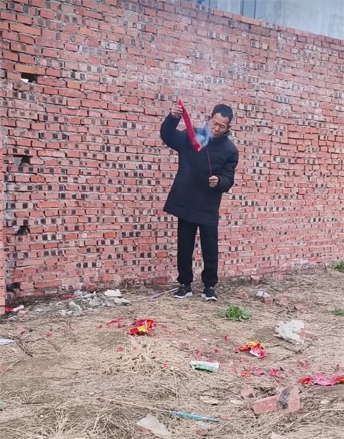 发家在放鞭炮。 视频截图