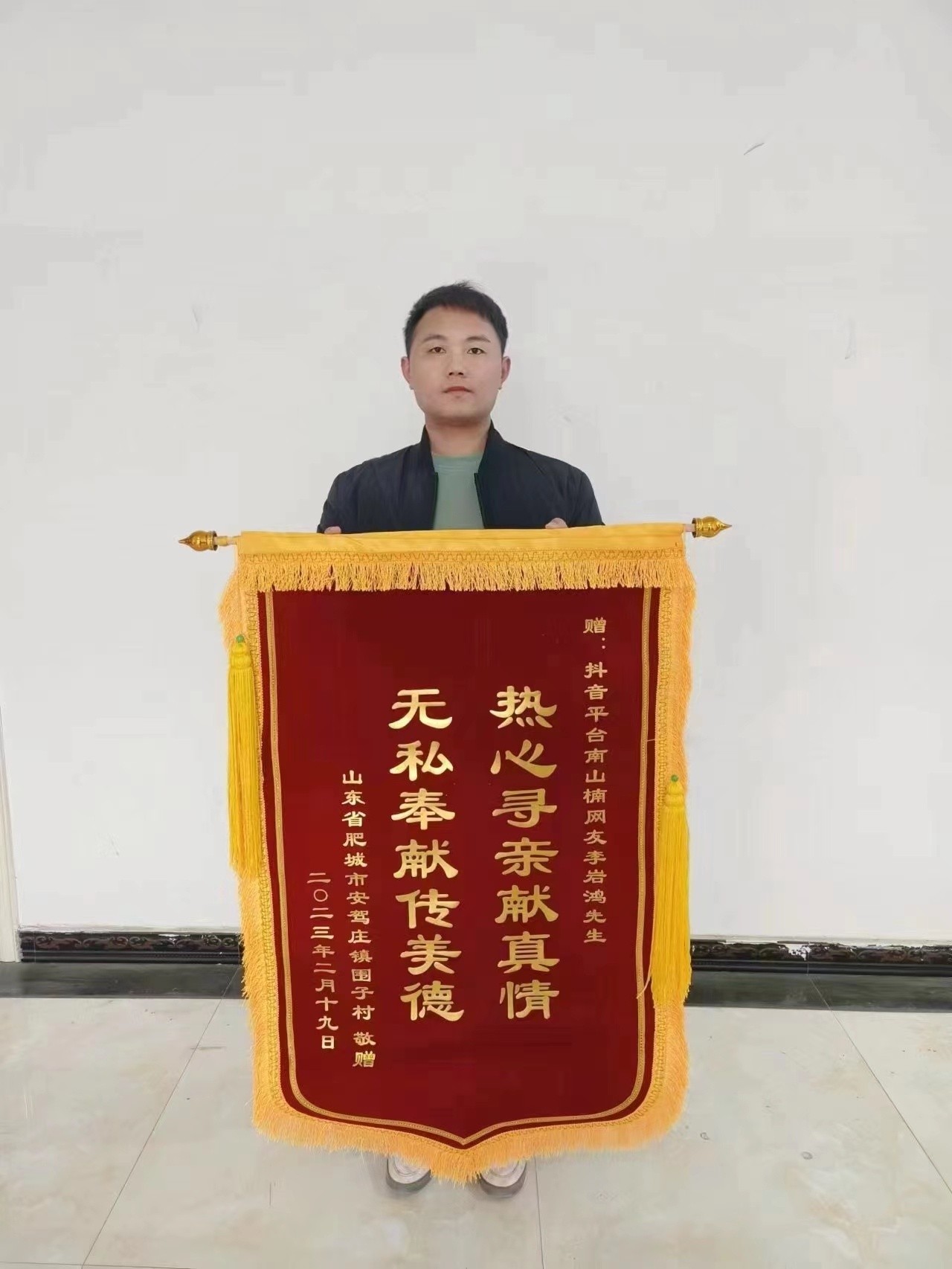 尉家人特别感谢李岩鸿,执意要表达谢意,但李岩鸿一一谢绝。他觉得发家找到家已经是一个很圆满的结局了,其他的都不重要。最终,尉家人给他送了一面锦旗。