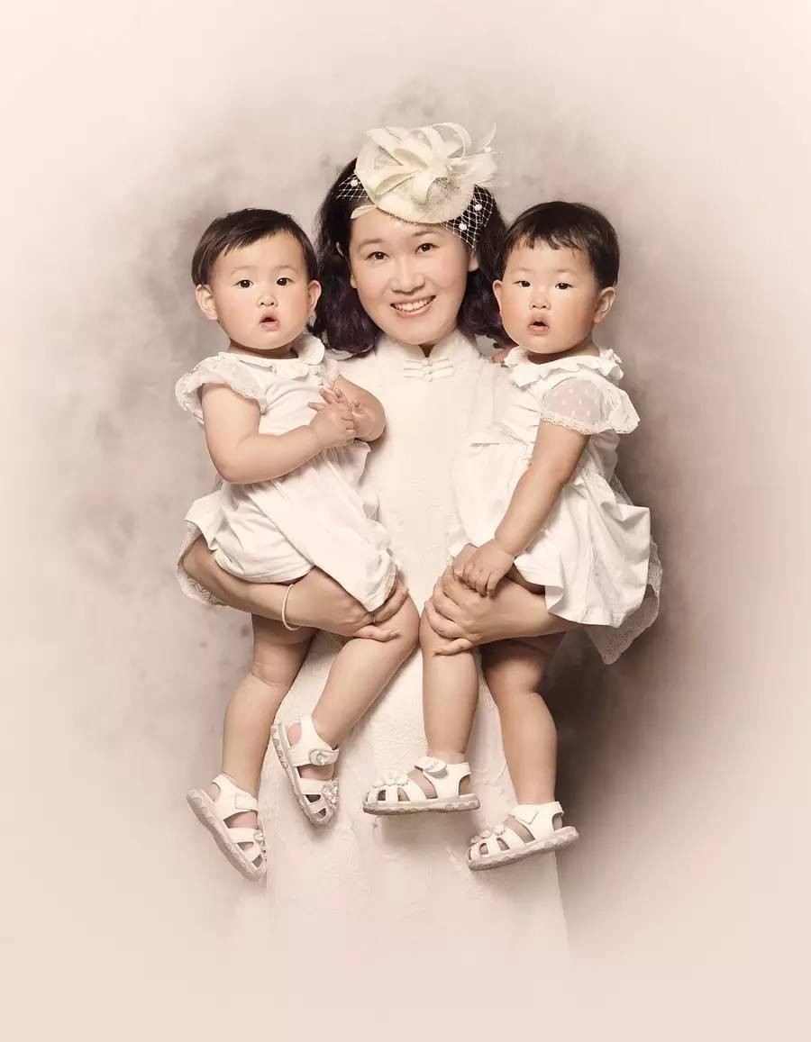 这对双胞胎小姐妹和他们的父母拍摄的全家福采用了以往照相馆常常使用的“虚光”效果,过去这种效果是在暗房后期冲洗时经过遮挡等动作制作完成的,今天,我们使用photoshop后期得到这种画面更加方便快捷。
