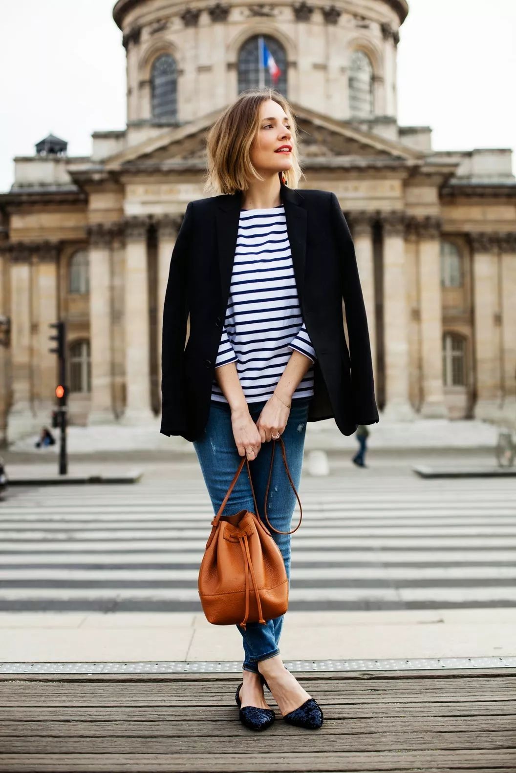搭配小西服和紧身牛仔裤,海魂衫可以为干练的风格增添一丝自由随性
