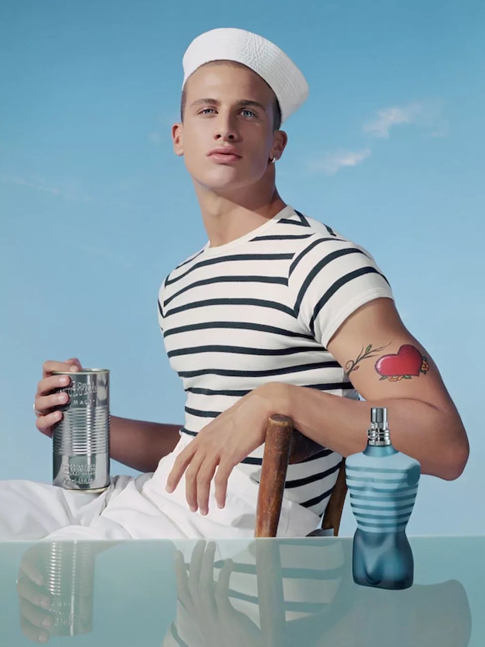 Jean-Paul Gautier 设计的 Le Male 男士淡香水,瓶身造型为身穿海魂衫猛男半身像