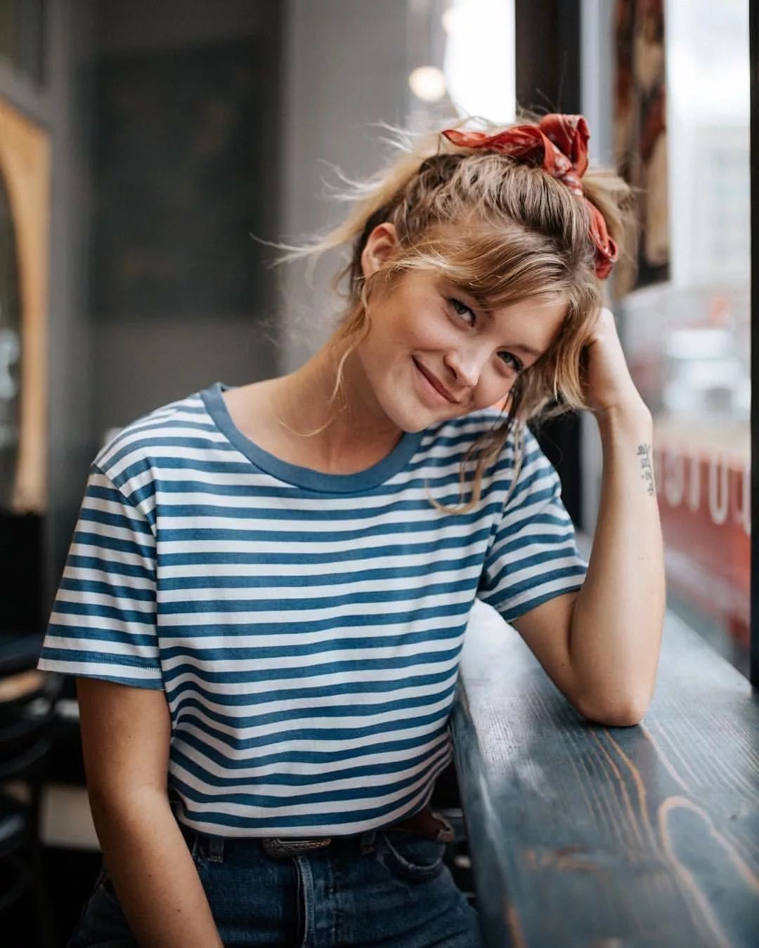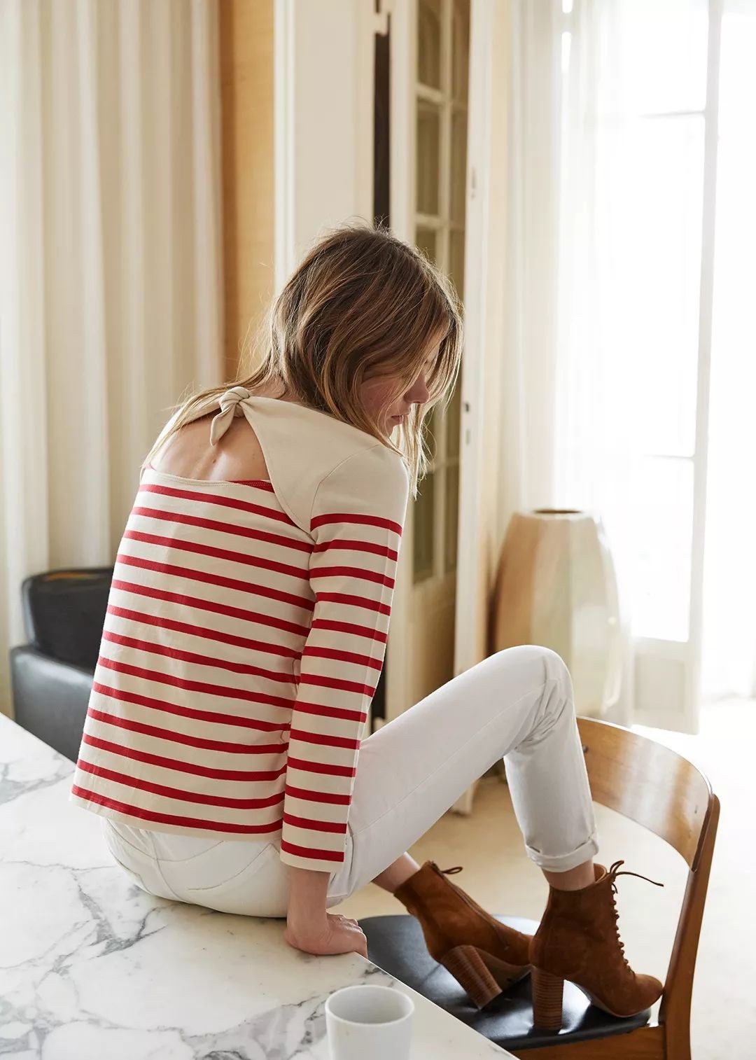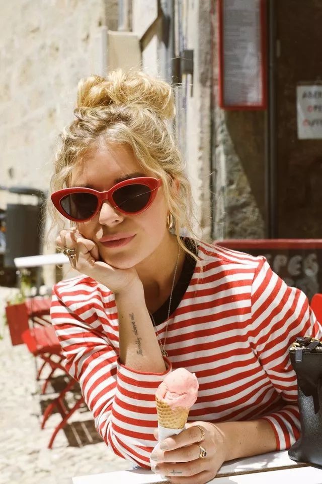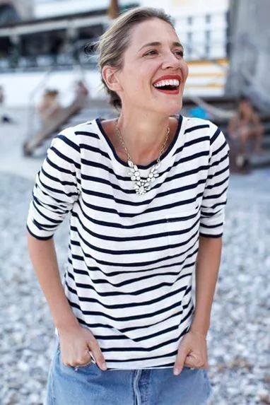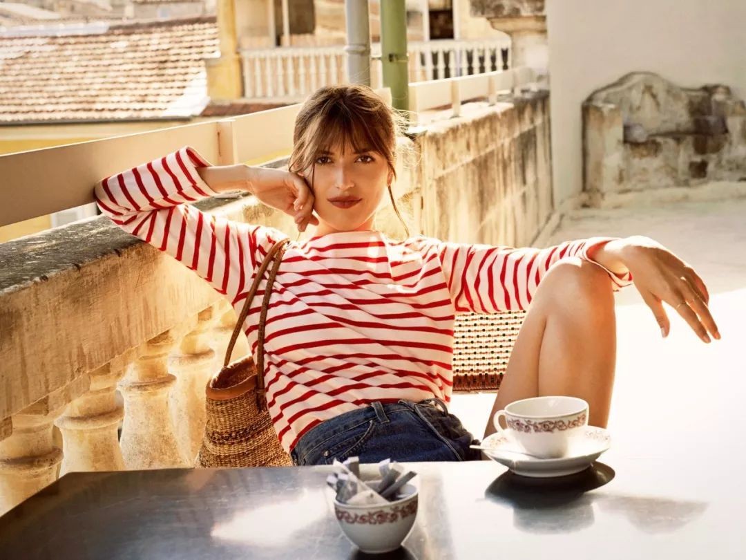 除了蓝白相间的海魂衫,红白条纹,甚至红白蓝条纹的进阶版海魂衫也是法国女人们的心头好