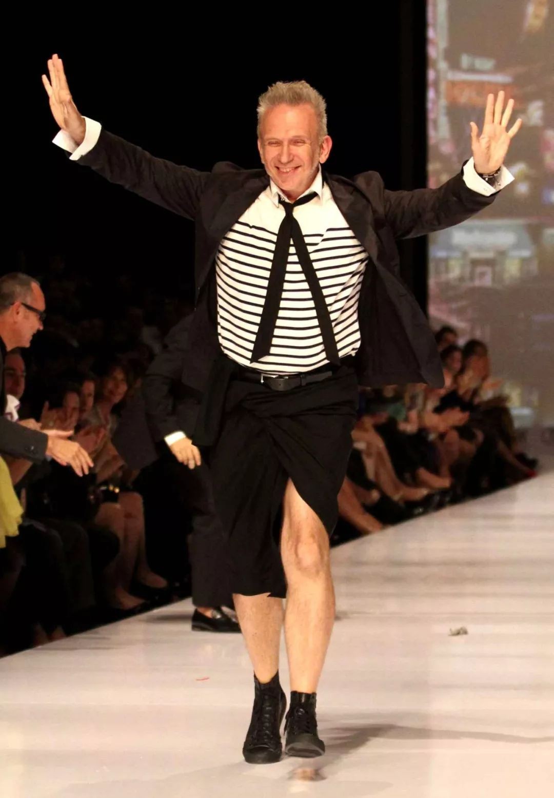 在众多设计师中,Jean-Paul Gautier 可以说是对海魂衫执念最深对一位了。海魂衫在 1993 年的「Toy Boy」系列里成为了主打设计,Jean-Paul 也在走秀最后身穿海魂衫出来与观众打招呼。