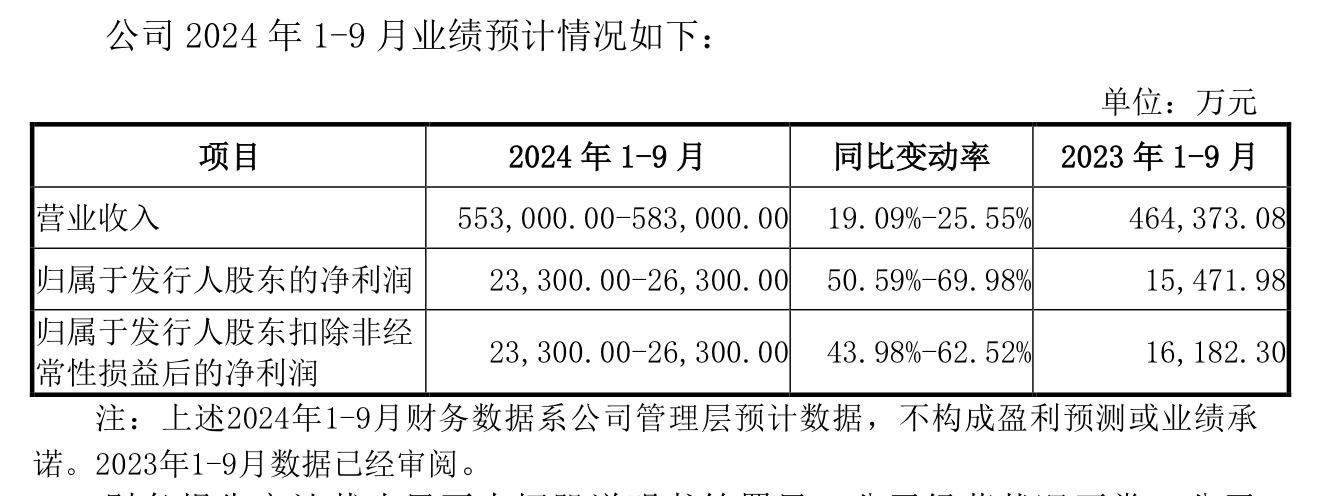 需要注意的是,永杰新材2022年营业收入有71.5亿元规模,但2023年下降为65.04亿元;2022年净利润有3.54亿元,2023年降为2.38亿元。好在2024年似有企稳,2024年上半年永杰新材的营业收入为37.32亿元,净利润1.64亿元。另公司预测2024年前三季度的营业收入数据为55.3亿元至58.3亿元,同比变动率19.09%至25.55%;净利润2.33亿元至2.63亿元,同比变动率50.59%至69.98%。