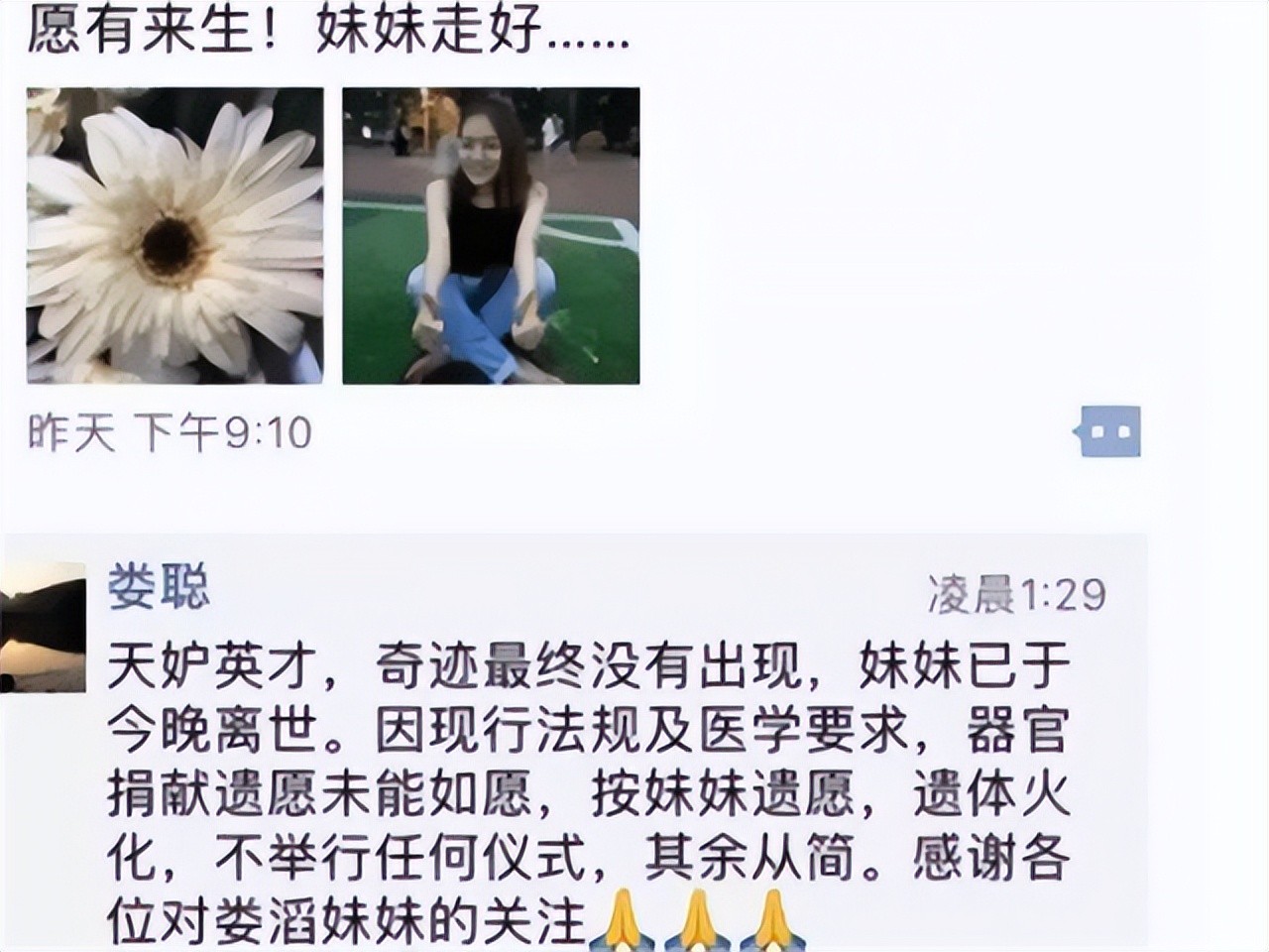令人惋惜的是,由于娄滔的身体感染严重,她想要捐赠遗体的愿望无法完成。