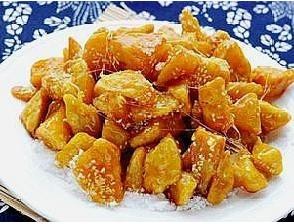 翻砂芋头口感细腻,在舌中能够清晰的感觉到芋头细腻的粉质。翻砂芋头是一道口味偏甜的家常菜。做翻砂芋头最好选用荔浦芋头,粉质更加的细腻,适合油炸。将芋头切成条状,放入锅中炸熟。做糖浆是关键的一步,时间太短,没有办法变成糖精。时间过长,糖会发苦。一般糖的用量是芋头的三分之一,比较符合大众的口味,如果喜欢吃甜一点的,可以适量的多加一些糖。