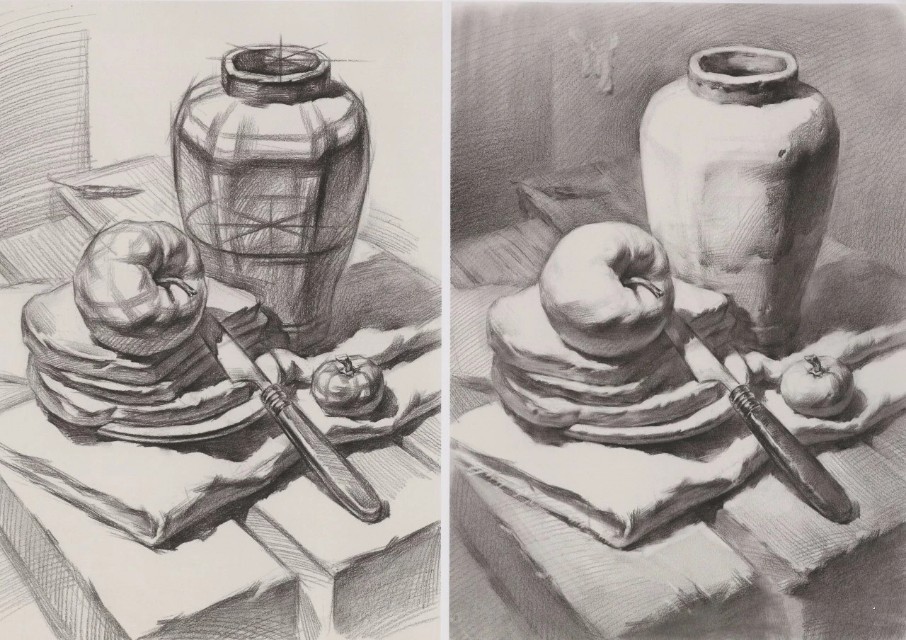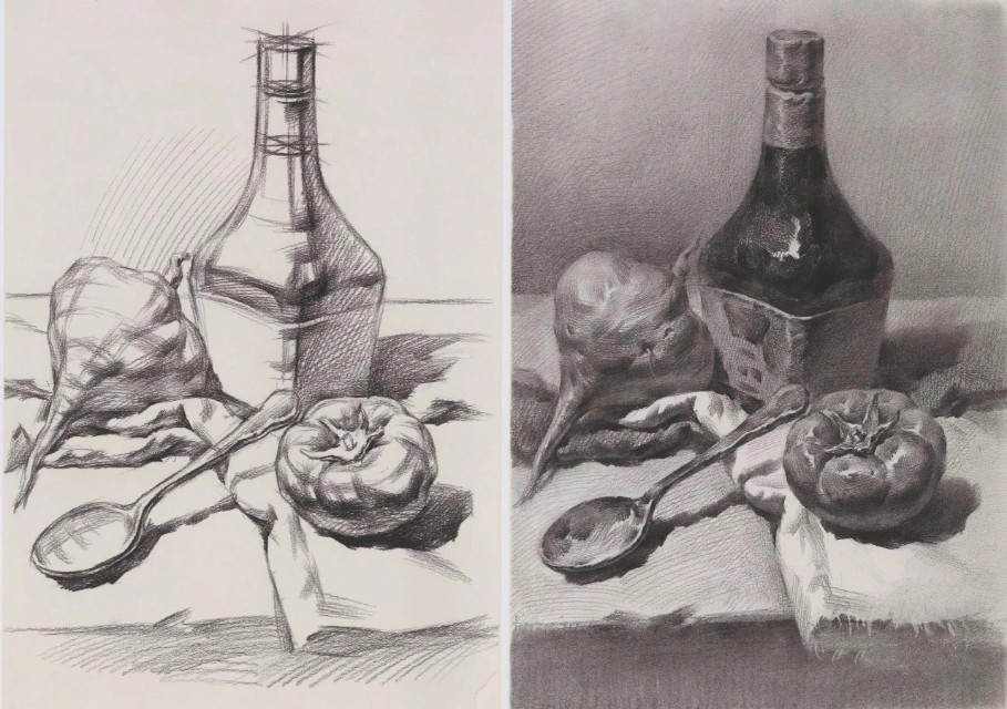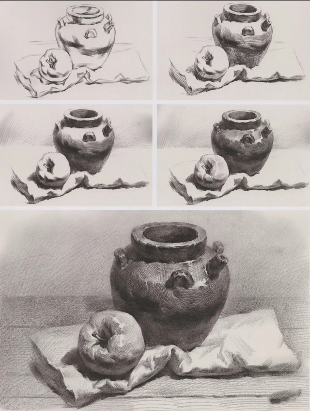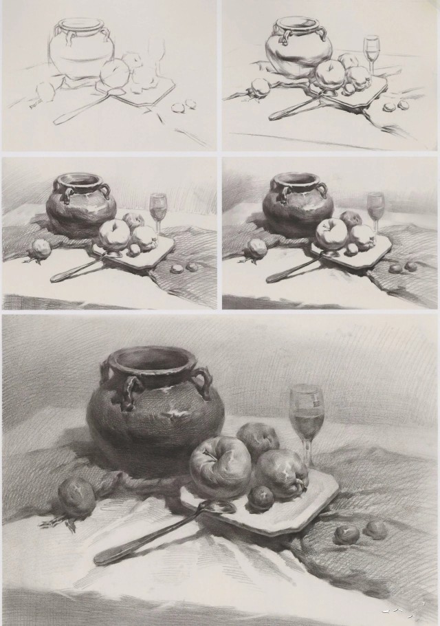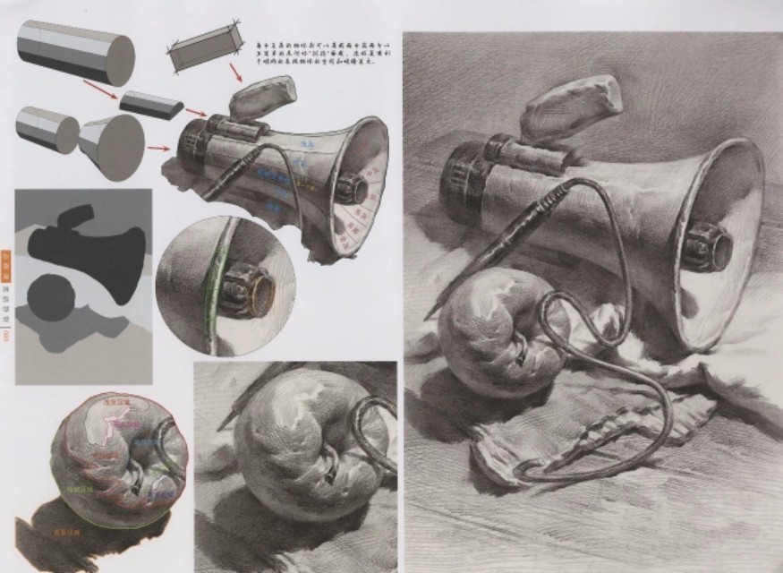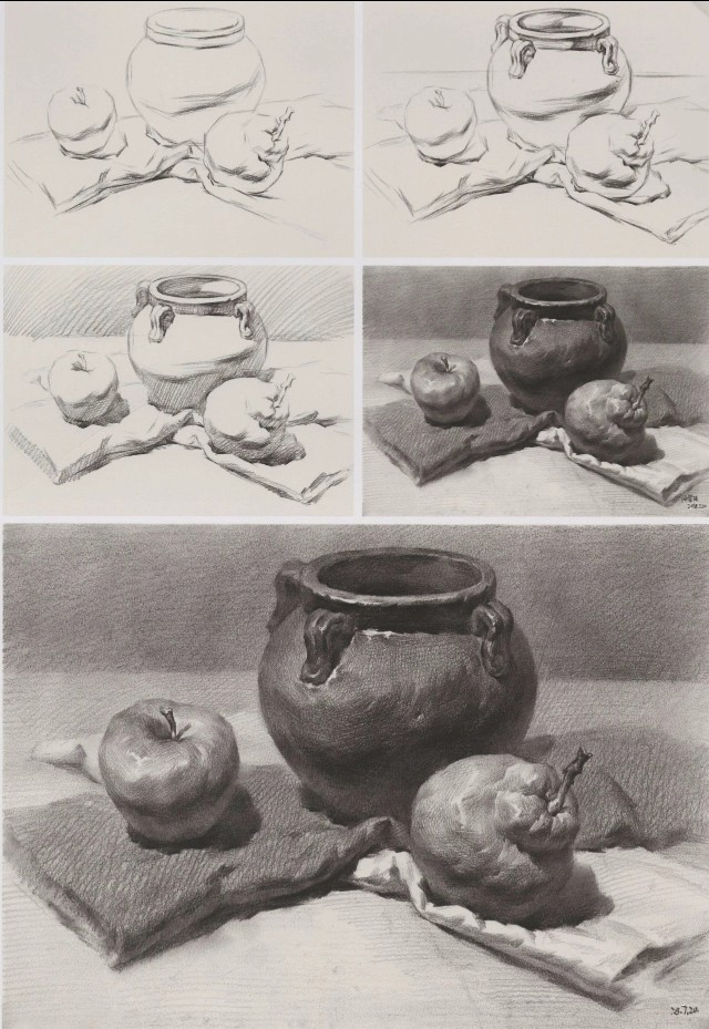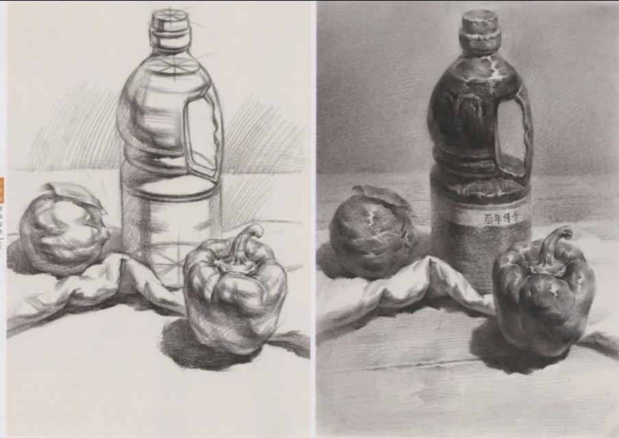 #教育名师团# #素描# 今天给大家带来的临摹精选内容是:联考风素描静物组合范画。