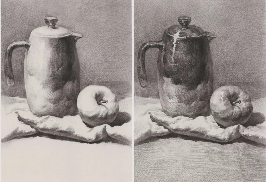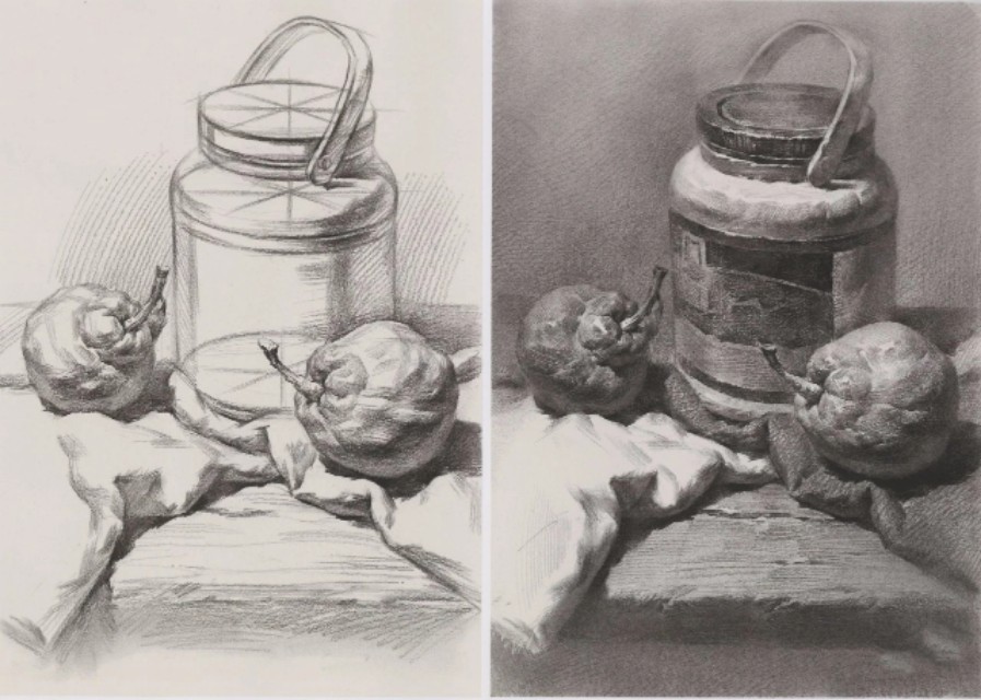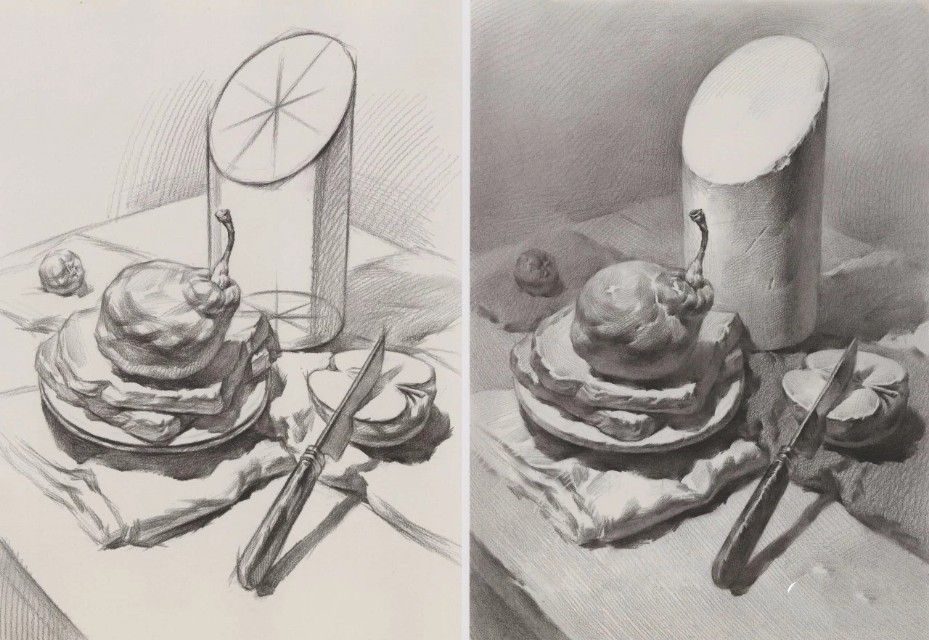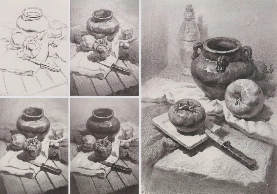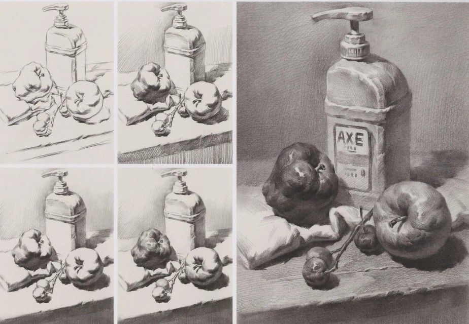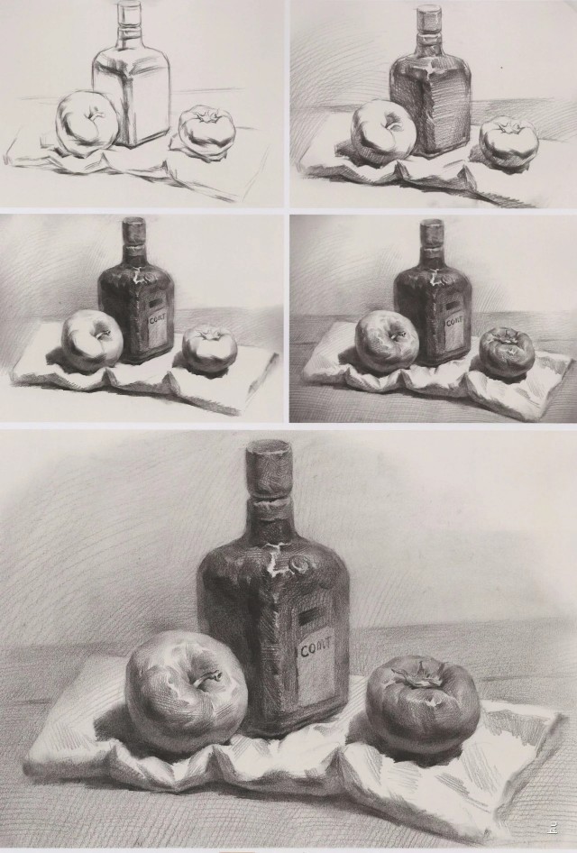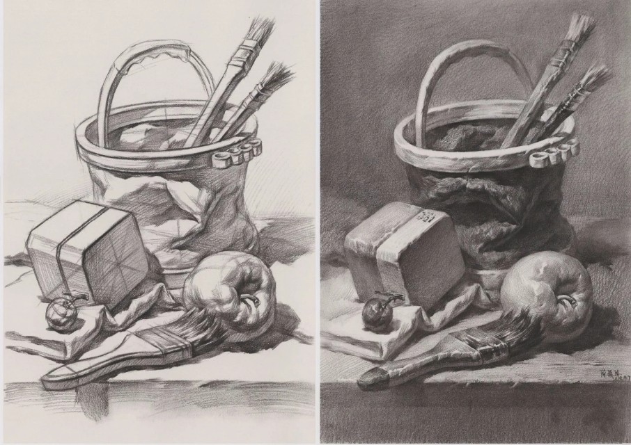 #教育名师团# #素描# 今天给大家带来的临摹精选内容是:联考风素描静物组合范画。