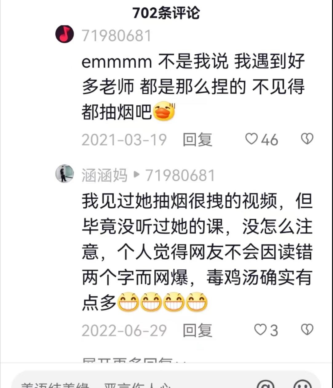 还有"火眼金睛"的网友开始翻她以前的视频,说她讲的都是"毒鸡汤",根本没有学术价值。