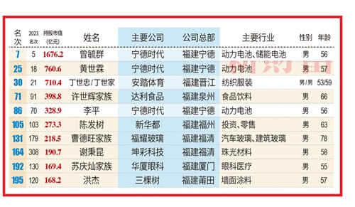 结语:福建本土富人榜的排名犹如一场激烈的资本竞赛,每位上榜者都是行业的佼佼者。宁德时代股价飙升,黄世霖和曾毓群身价暴涨,