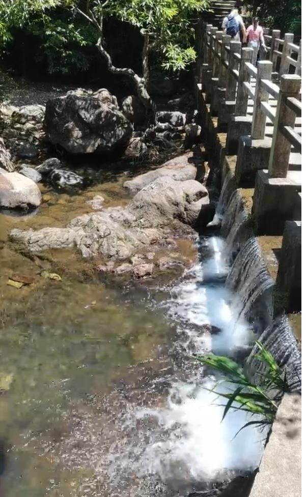 这一段大家都在步行哦,我们也选择步行,阳光非常好,中间还有观音坐莲古道可以参观游玩,也可以坐观光巴士前往,每人10块钱,不走上面平路的话,也可以走下面的将军步道,有三道,边走边玩,潺潺的溪水往下流,一步一台阶,一步一小景,水非常清澈,看起来非常舒服