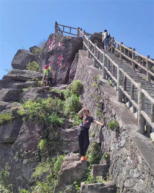 哇,可以看到山顶了,有人在山顶最上面石头上拍照呢