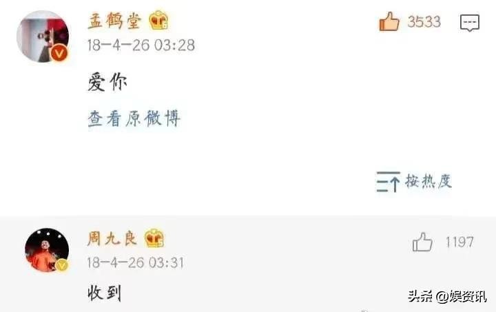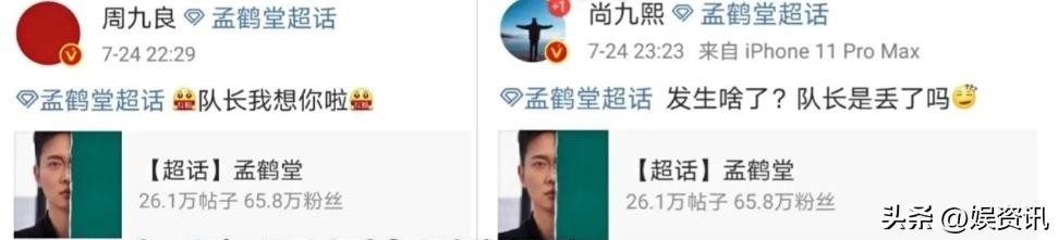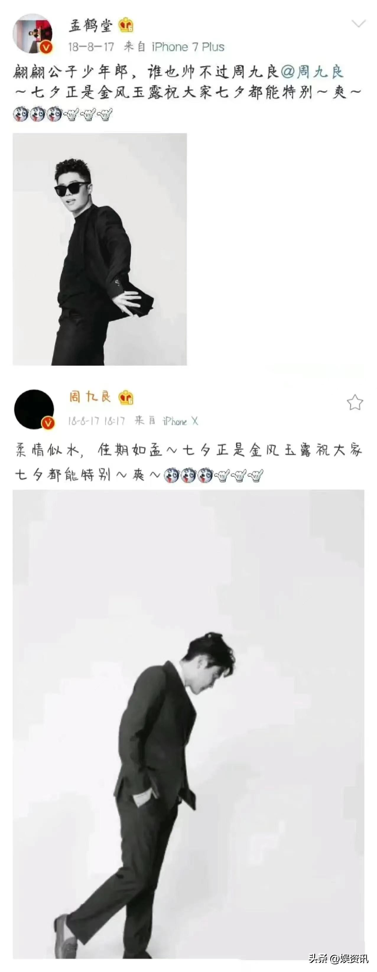 曾在七夕互发对方照片,生日送上甜甜的祝福,在看到对方和别人出去玩合照的时候假装吃醋,会毫无遮拦的夸赞对方,会大大方方的表达爱你,甚至周九良还曾称孟鹤堂为“对我而言完美的你”。