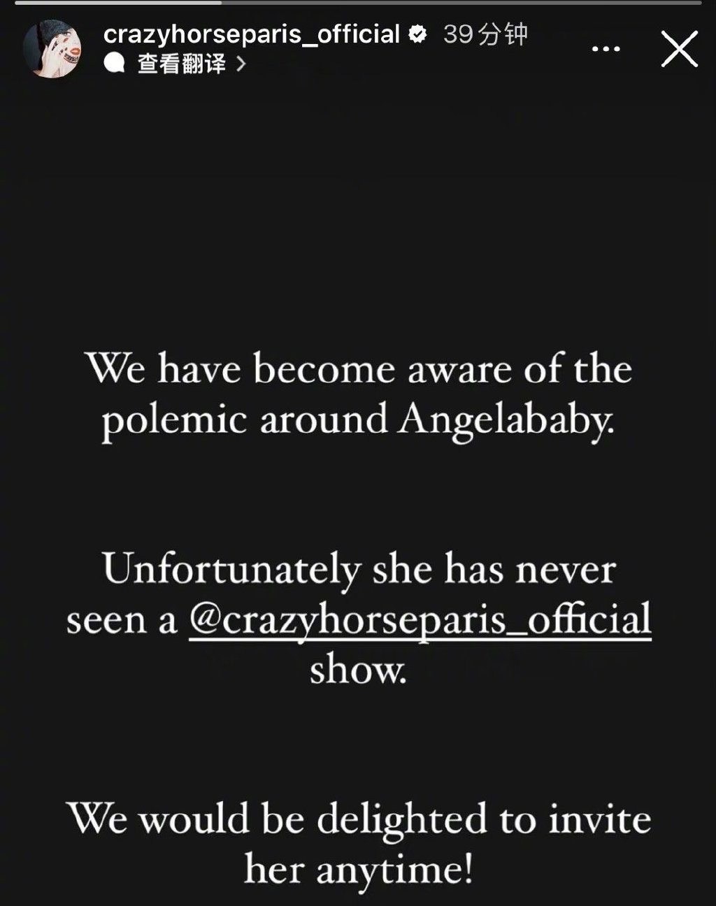 “疯狂的马”也发表了自己的声明:可惜 Angelababy从来没有见过她,如果可以的话,我会很高兴地邀请她。