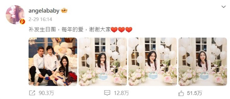 她已经很久没有出现在公众面前了,她在今年刚刚回到工作岗位,之前她参加了杜拜,英国和伦敦的一些场合,并且在自己的微博上晒出了一些漂亮的照片。Angelababy的生日是二月二十八日,第二天她就在自己的微博上晒出了一张三世一家人的合影,她看到一家人都穿着一件白色的衬衫,她的父母和她的孩子“小海绵”一起合影,爷爷还牵着孙仔的一条胳膊,女孩的背后还放着一朵粉色的玫瑰花,看起来很是浪漫和温暖。