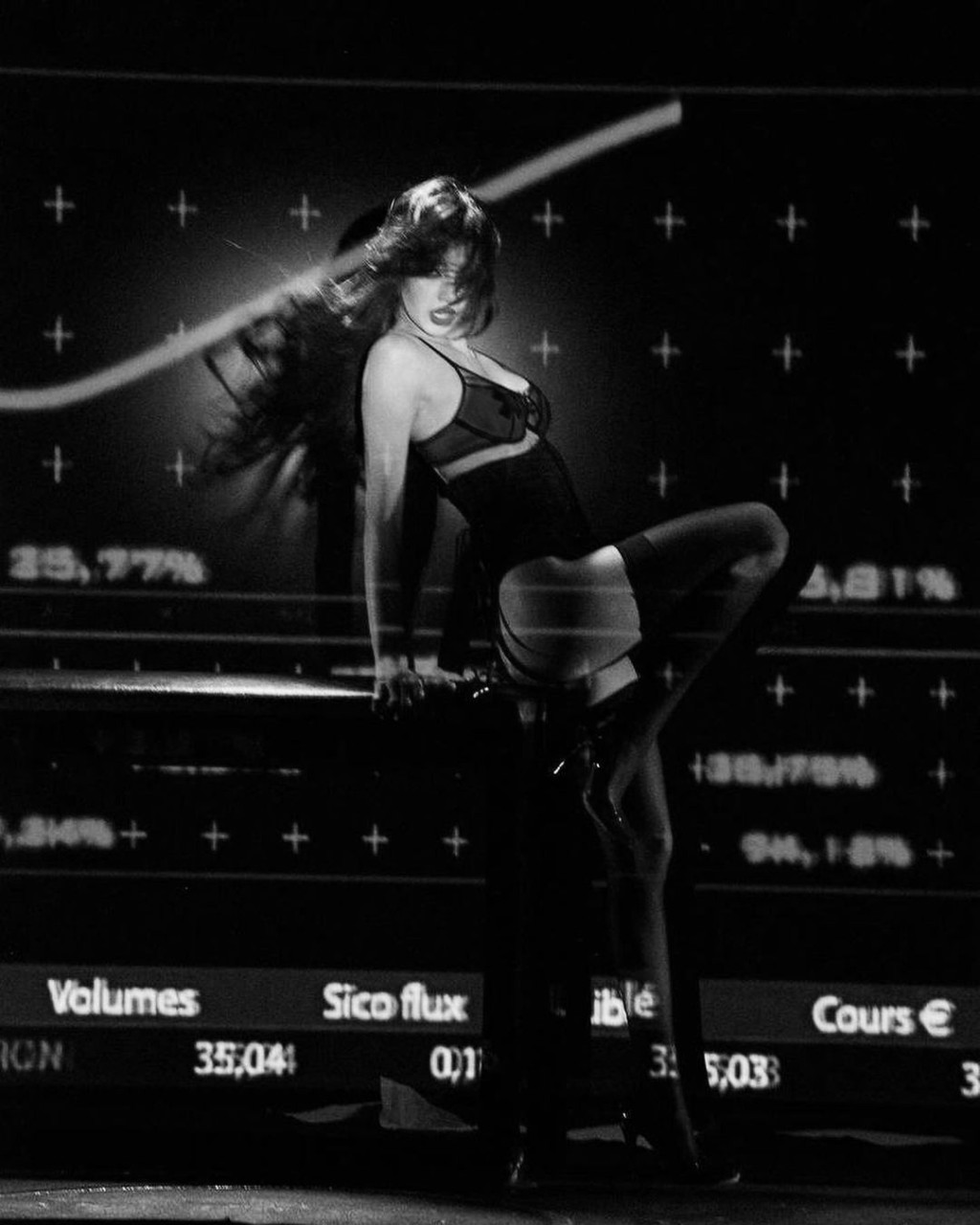 莉莎单手撑着下巴,半透明的裤子,让人浮想联翩。