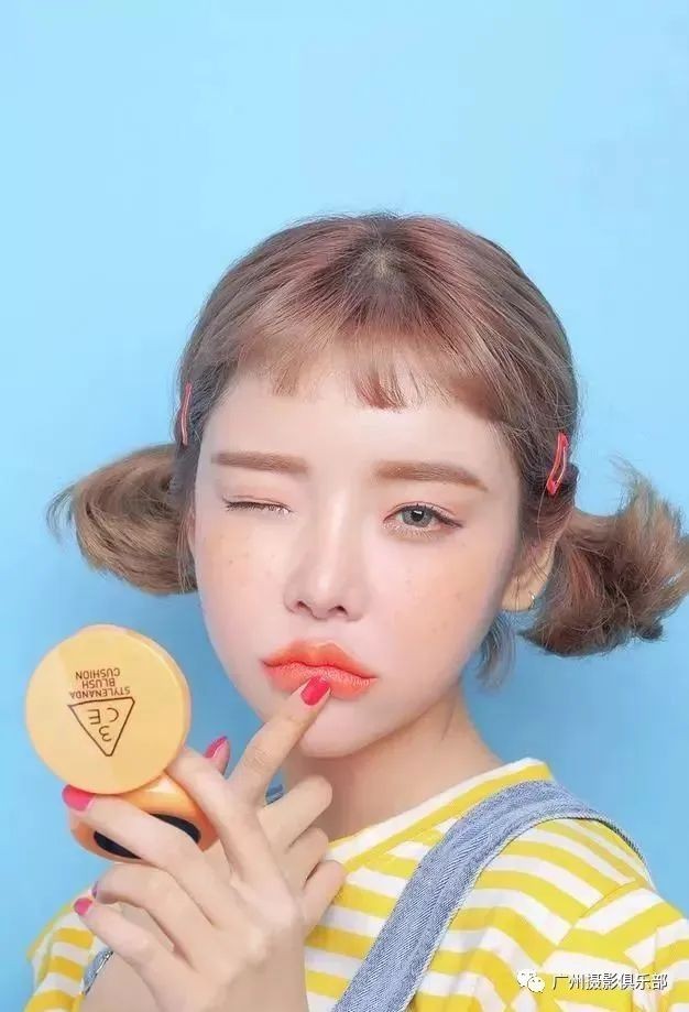 道具在摄影中有着重要的地位,你可以在附近寻找合适的道具,如一个手捧花、一瓶矿泉水、一个冰激凌等等,试着与这些东西展开互动,如下图就是女生使用化妆镜来充当道具,这种摆拍效果完全不僵硬,如下图就好似在化妆时发现被偷拍,就闭上一只眼搞怪。