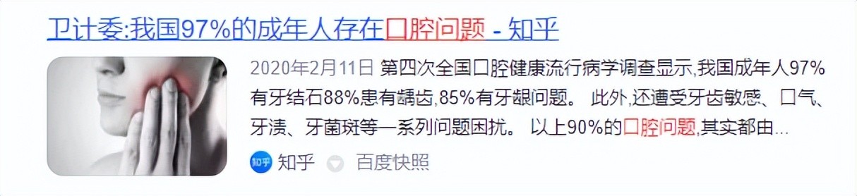经过卫计委的统计,我国有97%的成年人存在口腔问题,在这样的口腔素质下,盲目使用这些乱七八糟的产品,很可能导致更严重的口腔问题。