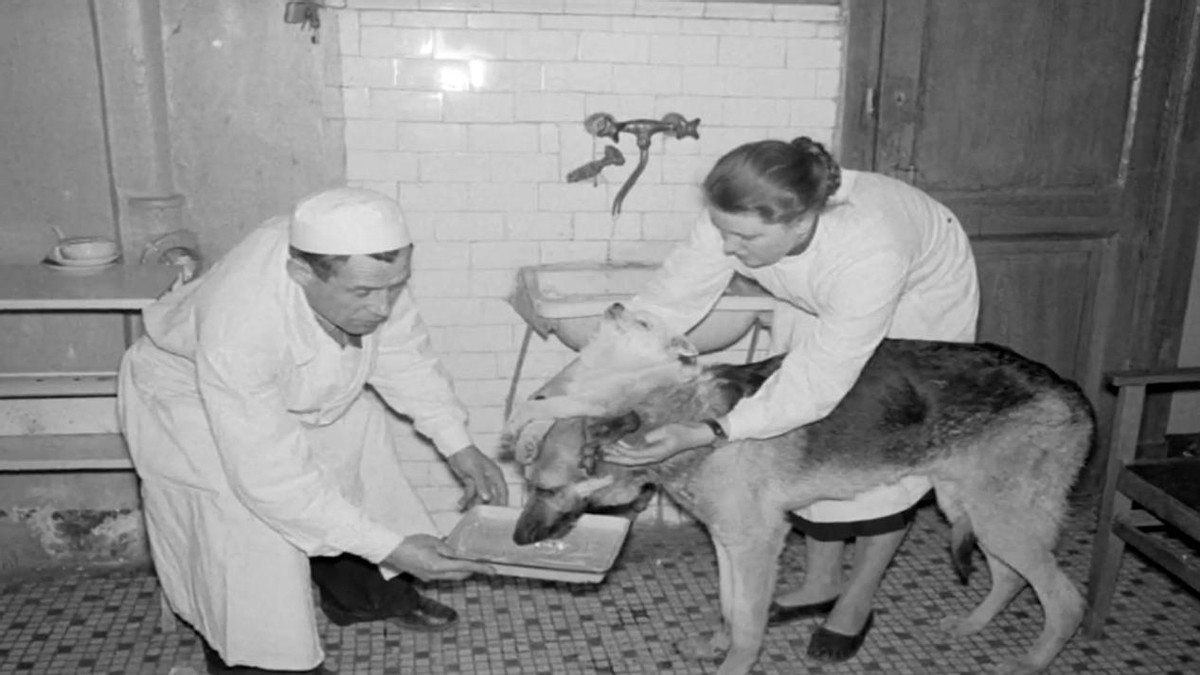 这是一小段来自冷战时期苏联的绝密影像,影片中出现了一头奇怪的合成生物。它像狗却好像又不是狗。庞大的身上竟然长出了两只脑袋,摇摇晃晃的走到盘子旁舔着里面的牛奶,犹如希腊神话中地狱三头犬降临一般。