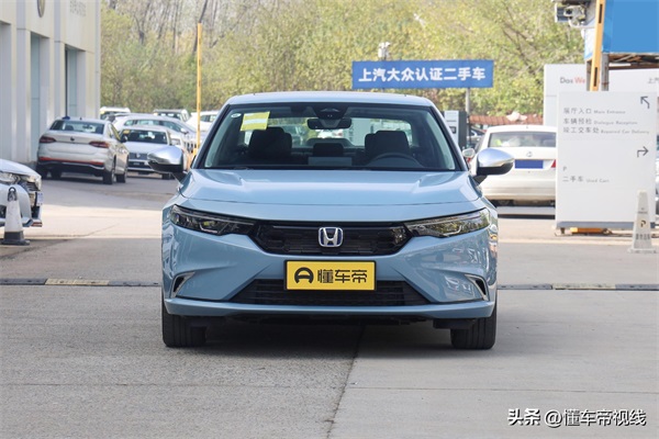 外观方面,型格e:HEV与现款在售燃油车型一样,采用了本田最新的家族式设计语言。小尺寸的前中网内部采用了蜂窝状结构,两侧狭长的前灯组与中网融为一体,为车头带来了更好的视觉宽度。而前包围底部也融入了小尺寸的前铲造型,令前脸看上去更加运动。不过,位于前脸中央的Logo融入了蓝色元素,这也是本田混动车型的标志之一。