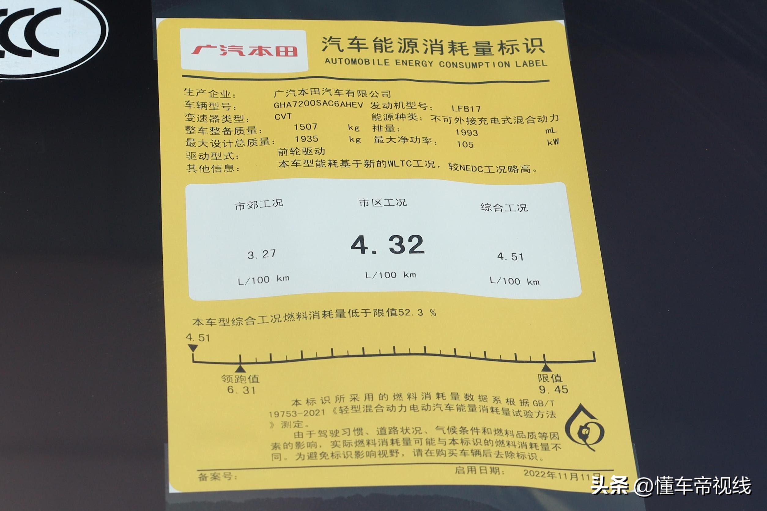 官方公布的油耗信息