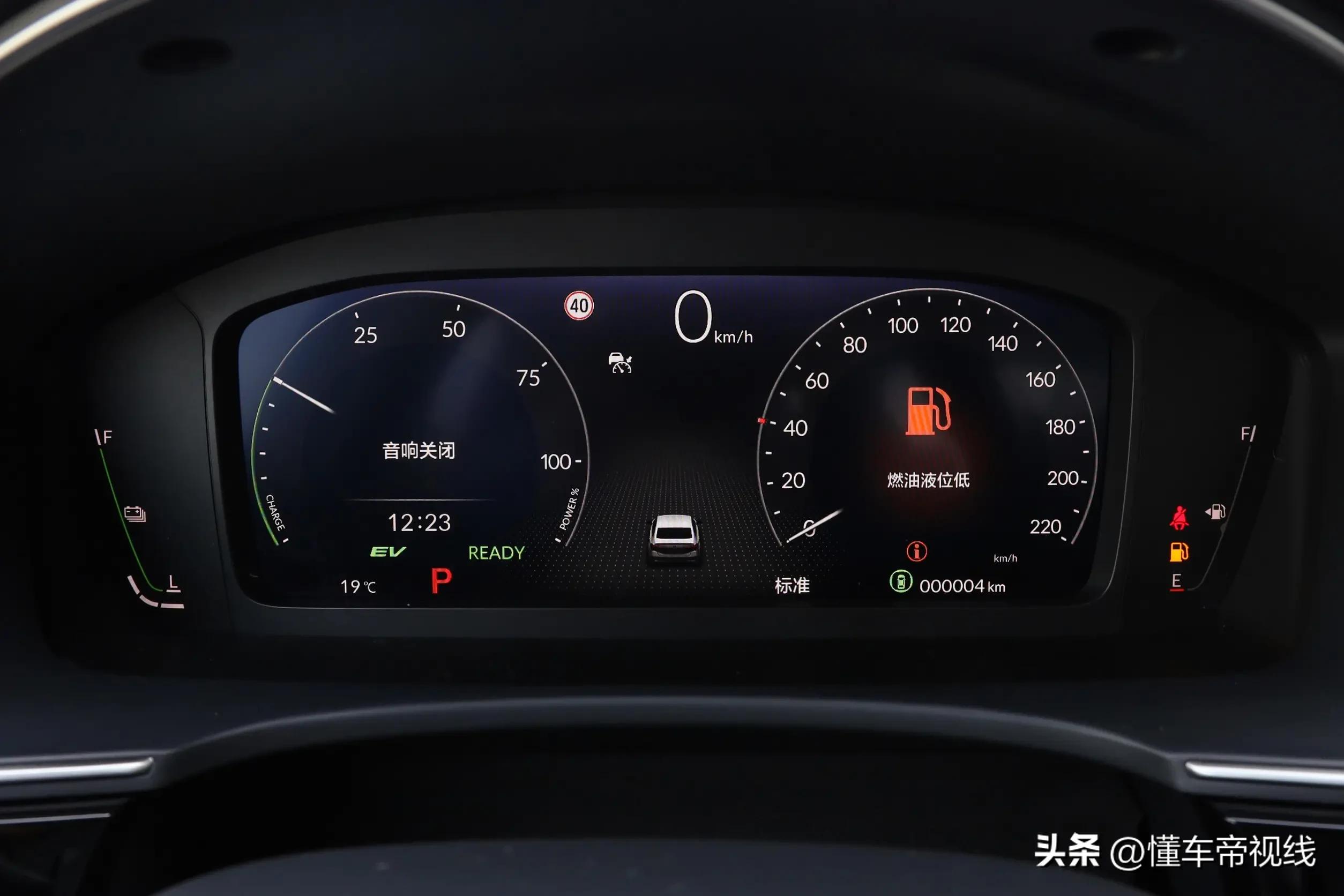 10.2英寸全液晶仪表盘将发动机转速表替换为了混动系统的能量表,以显示系统是处于动力输出或是能量回收状态。同时,仪表中还增加了一些与混动系统相关的信息显示,比如驱动模式、动力系统能量流显示灯。