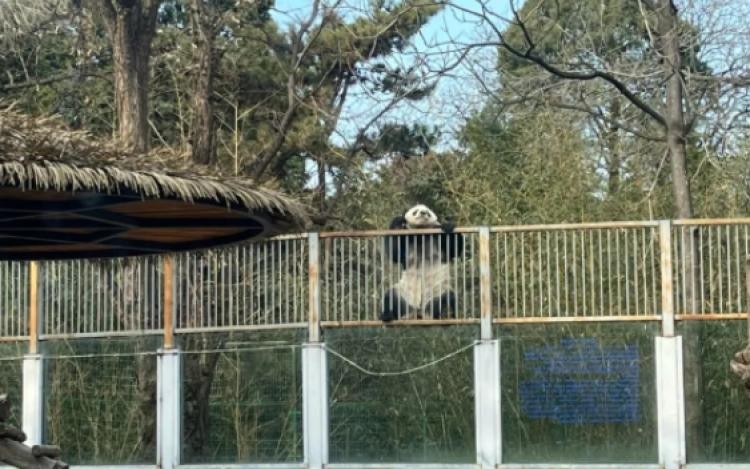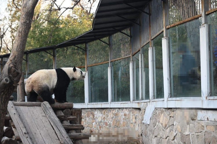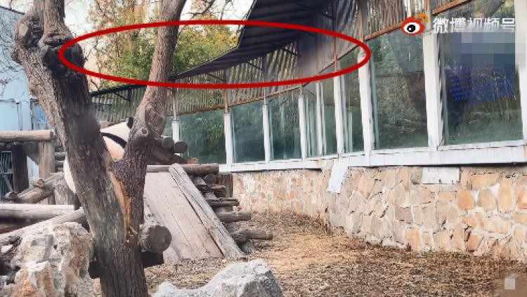 熊猫“萌兰”的运动场围栏顶部被加装上了防护挡板。