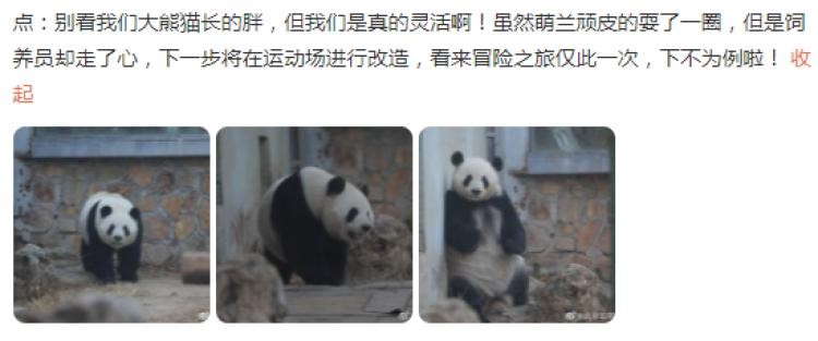 这只名叫“萌兰”的熊猫玩嗨了,翻墙进了运动场外的缓冲区!园内游客纷纷围观,相关视频登上热搜,“萌兰”一时变成了全网热宠。