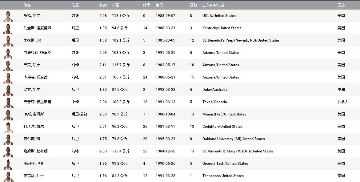 附录:2016-2017赛季骑士队球员名单: