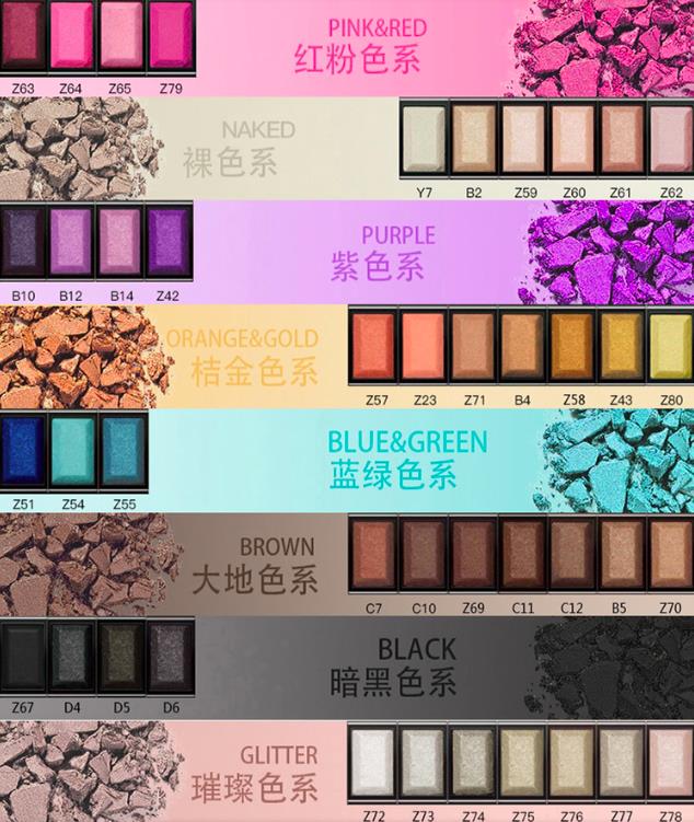 48 个颜色自选,买超过 3 个就会送盒子,盒子有三格、四格、五格之分。单个眼影底部有磁条,靠磁力吸附在盒子底部。也可以多买几个颜色,需要带出门时就挑几个颜色放在眼影盒里,天哪好人性化!