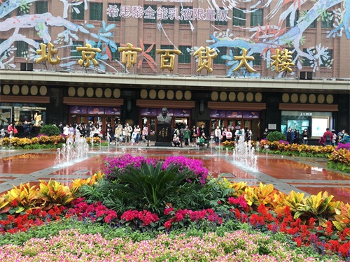 远远能够望见的这个标志性建筑是北京市百货大楼,也叫王府井百货。