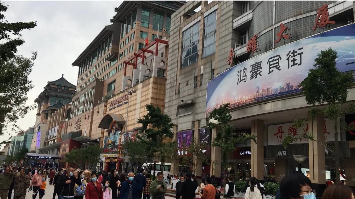 这是王府井大街南部的入口(因地铁施工有部分路段封闭)。