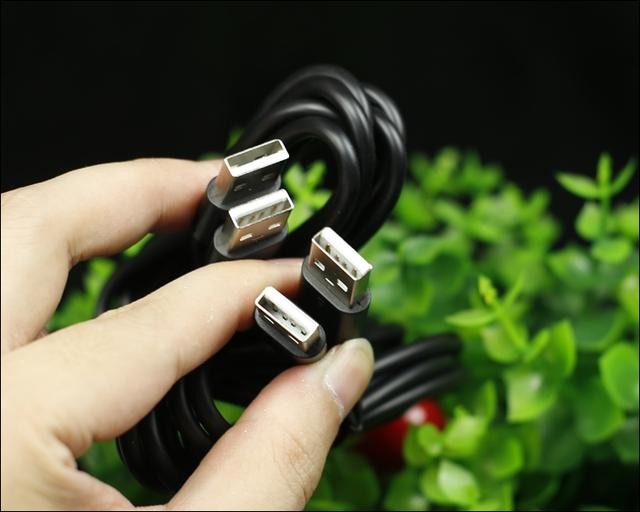 两根USB连接线,两端都是全尺寸USB设计。这种线路可以购买到的极限长度在10米,