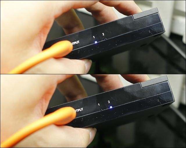 分别在两个输入插口上面,一个连接我爸爸卧室里面的电脑,另一个连接我书房里的电脑