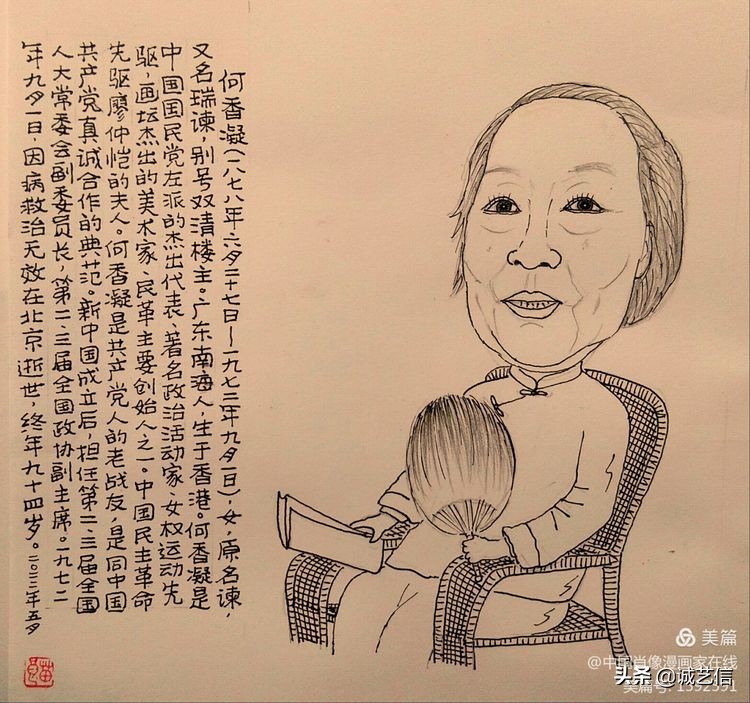 一代女杰何香凝肖像漫画