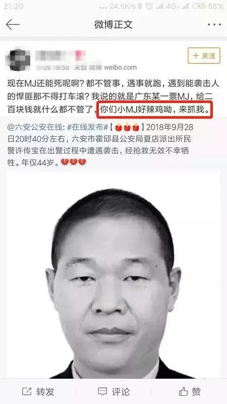 公然侮辱牺牲民警 活该被抓!
