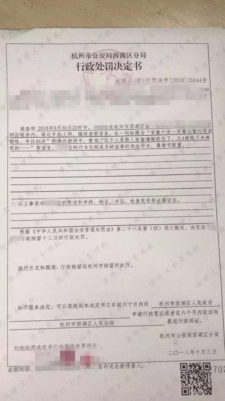 接到举报后,霍邱县公安局迅速行动,经查发现,发帖人系六安市裕安区固镇居民朱某宝,后在裕安分局的配合下调查得知,嫌疑人朱某宝现正在杭州某处打工,且长期不在六安居住,10月2日下午,霍邱县公安局民警赶赴杭州,在当地警方的配合下一举抓获朱某宝。据调查,朱某宝,男,30岁,离异,发帖当晚朱某宝酒后观看新闻时出于“无聊”,编造了“民警偷情坠楼”的谣言,民警根据调查发现,朱某宝长期在网上发布一些不符合实际的言论。到案后,朱某宝深刻的认识到自己的错误,并希望牺牲民警的家属能够接受自己诚挚的道歉。最终,朱某宝被处以行政拘留13日的处罚。