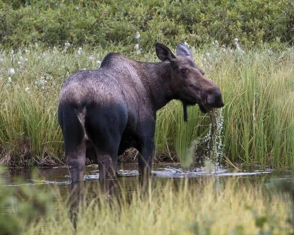 此外,驼鹿的水中求生技能还体现在它们的食物选择上,因为水草是驼鹿的主食之一,它们经常用那长长的鼻子将水草一口卷起,大快朵颐。